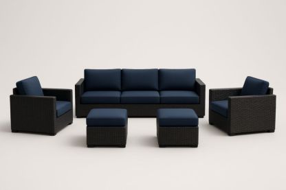 Set Divano da Giardino in Rattan Sintetico con Cuscini Blu