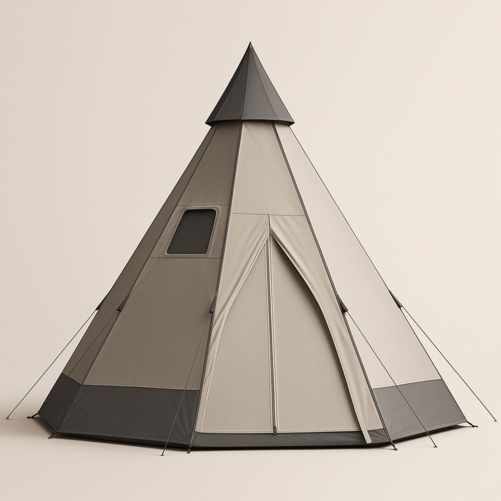 Tenda Tipi Piramidale in Poliestere Beige e Grigio Ø300x250 cm